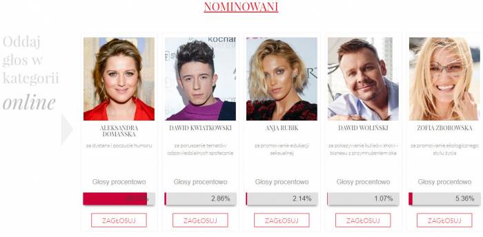 W tym roku wśród osób nominowanych do zaszczytnego tytułu znalazła się Aleksandra Domańska – pochodząca z Garwolina aktorka, którą widzowie znają między innymi z filmów „Volta”, „Ambassada” i „Podatek od miłości” oraz serialu „O mnie się nie martw”. 29-latka ma na swoim koncie również występ w Milionerach i wizytę na kanapie u Kuby Wojewódzkiego. Aktorka gościła także na kanapie kina „Wilga” w Garwolinie, gdzie była gwiazdą spotkania z cyklu „Kino w szpilkach”.