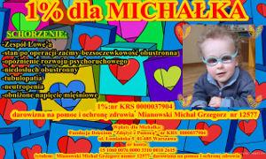 Michałek Mianowski ma pięć lat. Urodził się z zaćmą wrodzoną. Przez pierwsze kilka miesięcy życia nie miał kontaktu wzrokowego z otoczeniem. Na szczęście takie schorzenie jest dzisiaj do wyleczenia. Potrzebny jest tylko Wasz 1 % podatku.