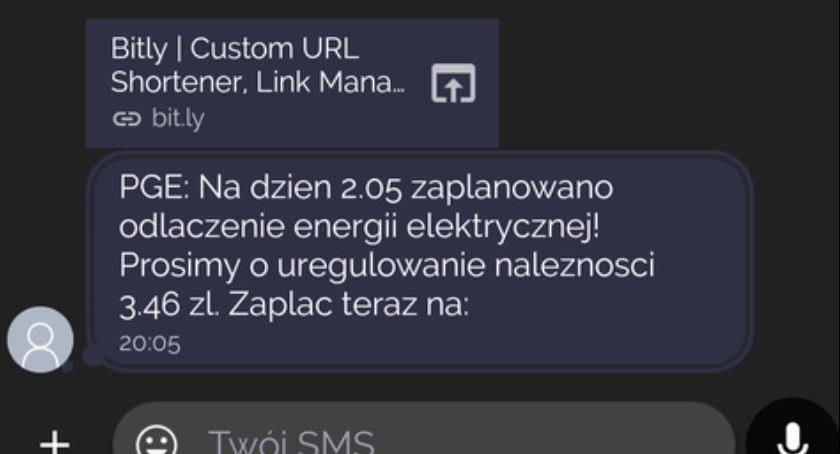 Czytelnicy alarmują, że otrzymują informacje o planowanym odłączeniu energii elektrycznej z wezwaniem do zapłaty. – Nie płaćcie, bo to oszustwo – przestrzega Edyta, która zaznacza, że dostała taką wiadomość, mimo, że licznik nie jest zapisany na jej nazwisko. Swoich klientów przed oszustami ostrzega także PGE Obrót. Grupa PGE apeluje o rozwagę, a także o przekazywanie ostrzeżenia rodzinie oraz znajomym.