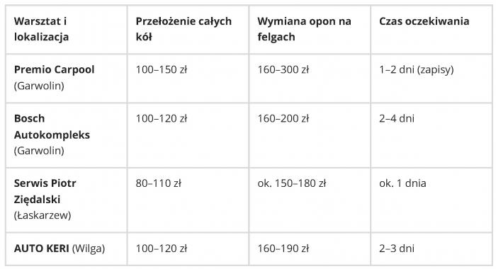 Wniosek: Jeśli mieszkasz w Garwolinie i masz opony na osobnych felgach, różnica w cenie może nie pokryć kosztów paliwa na dojazd do sąsiedniej gminy. Jeśli jednak zmieniasz same opony na dużych felgach (17" i więcej), wycieczka do mniejszego serwisu pozwoli Ci zaoszczędzić nawet 50 zł i sporo czasu.