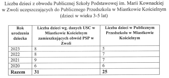 Gmina zapewnia, że od września 2026 r. uczniowie znajdą miejsce w oddalonej od Zwoli o 4 km Publicznej Szkole Podstawowej w Miastkowie Kościelnym, która dysponuje nowoczesną bazą, w tym nową halą sportową. Samorząd gwarantuje również bezpłatny transport oraz zatrudnienie dla 4 nauczycieli zlikwidowanej placówki (pozostali mają umowy terminowe lub uprawnienia emerytalne).