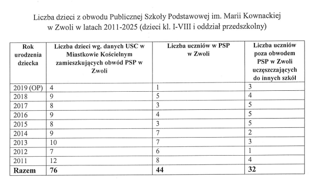 Drastycznie wysokie koszty: Utrzymanie jednego ucznia w Zwoli kosztuje rocznie 34 515,78 zł, podczas gdy w Miastkowie Kościelnym jest to kwota sporo niższa, bo 20 967,38 zł, a w SP w Zgórzu: 17.934,93 zł.