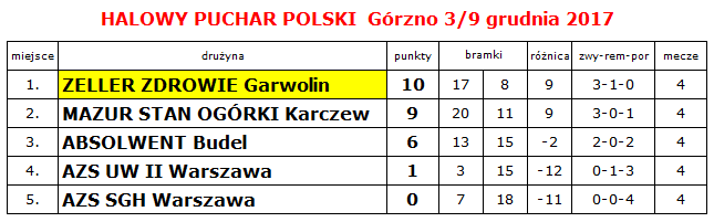 Halowy Puchar Polski na szczeblu Mazowieckiego Związku Piłki Nożnej. Górzno 3/9 grudnia 2017 roku.