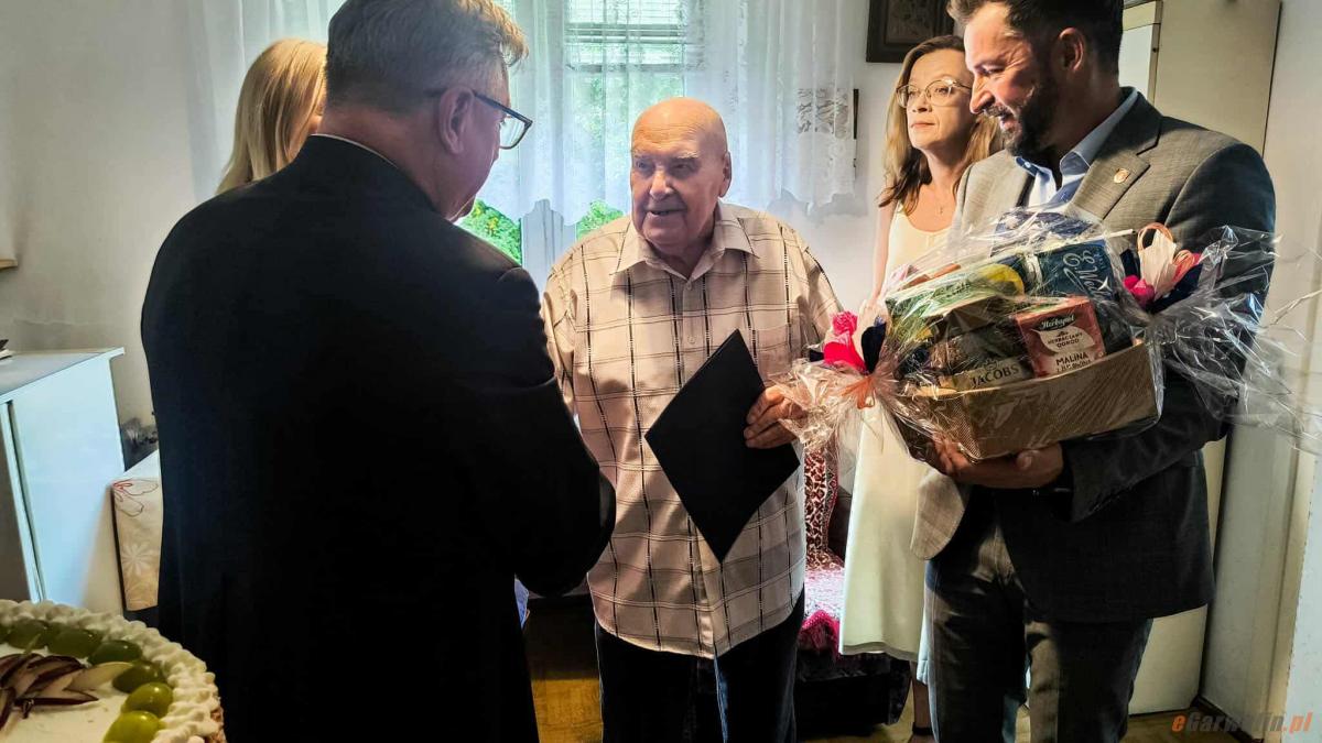 Galeria zdjęć z uroczystości 101. urodzin Henryka Szczepańskiego, w której wzięli udział m.in. burmistrz Marzena Świeczak, przewodniczący rady Marek Mikulski, oraz przyjaciele i krewni jubilata. Na zdjęciach widać wzruszające momenty obdarowywania jubilata kwiatami i życzeniami, a także radosne chwile z tortem i rozmowami. Henryk, weteran II wojny światowej, został uhonorowany za swoją odwagę i poświęcenie oraz za życie pełne ciepła, humoru i miłości. Jego historia to niezwykła opowieść o służbie dla ojczyzny i życiu w sercu Garwolina. Zdjęcia oddają piękno chwili celebracji i podziękowań, będących hołdem wobec człowieka godnego podziwu i szacunku.