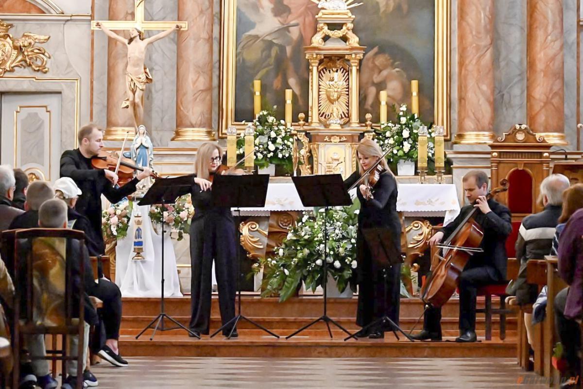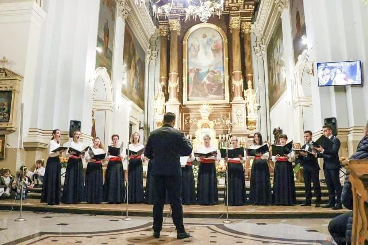 Zdjęcia przedstawiające przygotowania do wyjątkowego Koncertu Papieskiego w kościele Matki Bożej Kodeńskiej w Pilawie, mającego uczcić pamięć św. Jana Pawła II. Na fotografii widać chór Vox Cordis oraz warszawski kwartet smyczkowy Pro Musica Quartet podczas prób. Widoczne są także uczniowie szkoły prezentujący pantomimę na temat życia Wielkiego Rodaka. Atmosfera skupienia i piękna muzyka oddają ducha wydarzenia, które będzie hołdem dla Papieża Polaka.