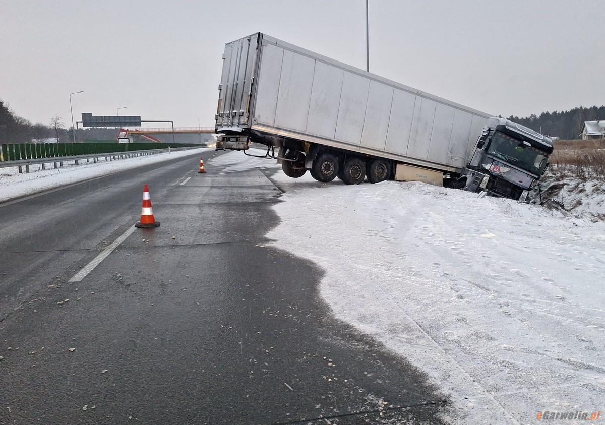 Ciężarówka w rowie na S17. Utrudnienia w kierunku Lublina