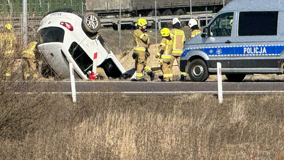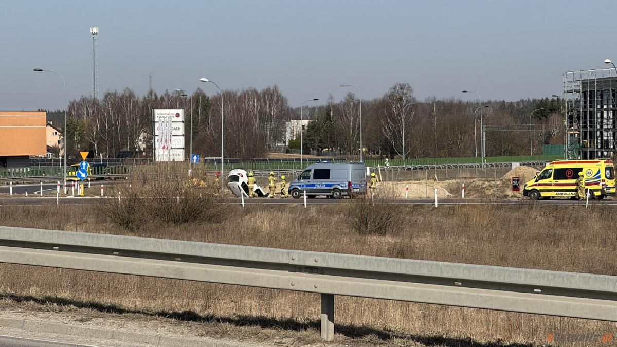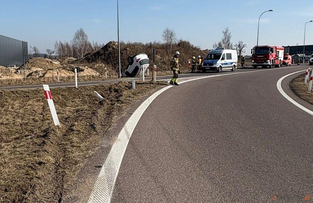 Dachowanie na S17: młody kierowca stracił panowanie nad autem
