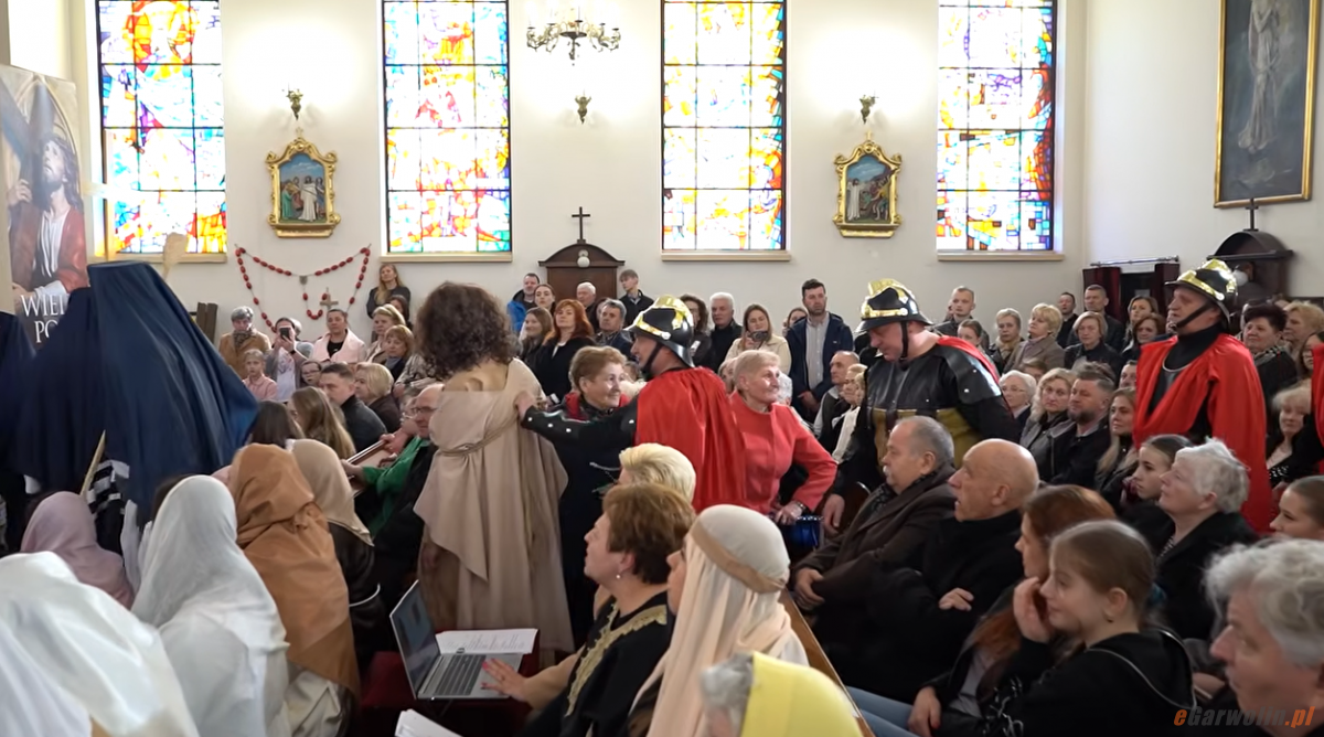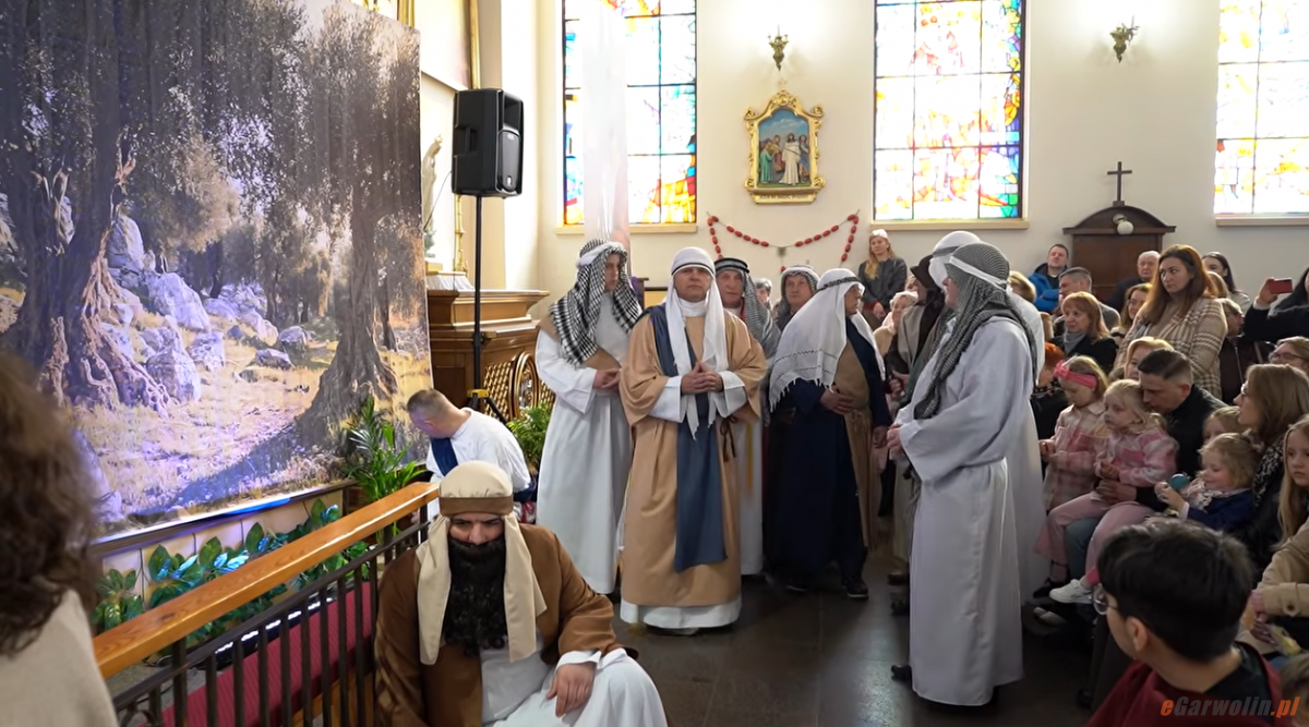 Tydzień temu, po Mszy Świętej o 12, w Łaskarzewie odbyło się czwarte parafialne widowisko pasyjne. Eucharystii przewodniczył ks. prałat Sławomir Niewęgłowski, a homilię wygłosił ks. kanonik Jan Spólny z Gończyc. Wydarzenie przygotowała Ewa Bożek z kilkudziesięcioosobową grupą parafian po wielu godzinach prób. Dzięki datkom kupiono rekwizyty i nowe stroje, a proboszcz sfinansował mikrofony nagłowne. Była muzyka, charakteryzacja i chusta Weroniki z wizerunkiem Jezusa.