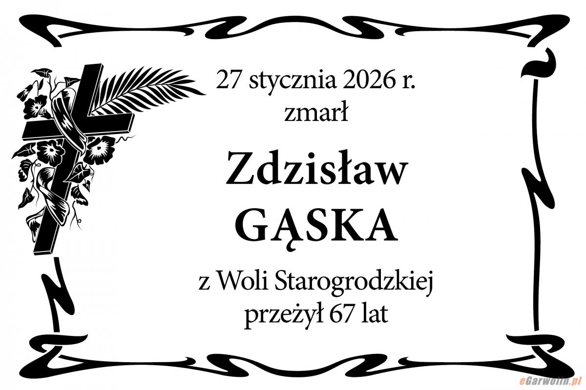 27 stycznia 2026 r. zmarł Zdzisław Gąska z Woli Starogrodzkiej, przeżył 67 lat