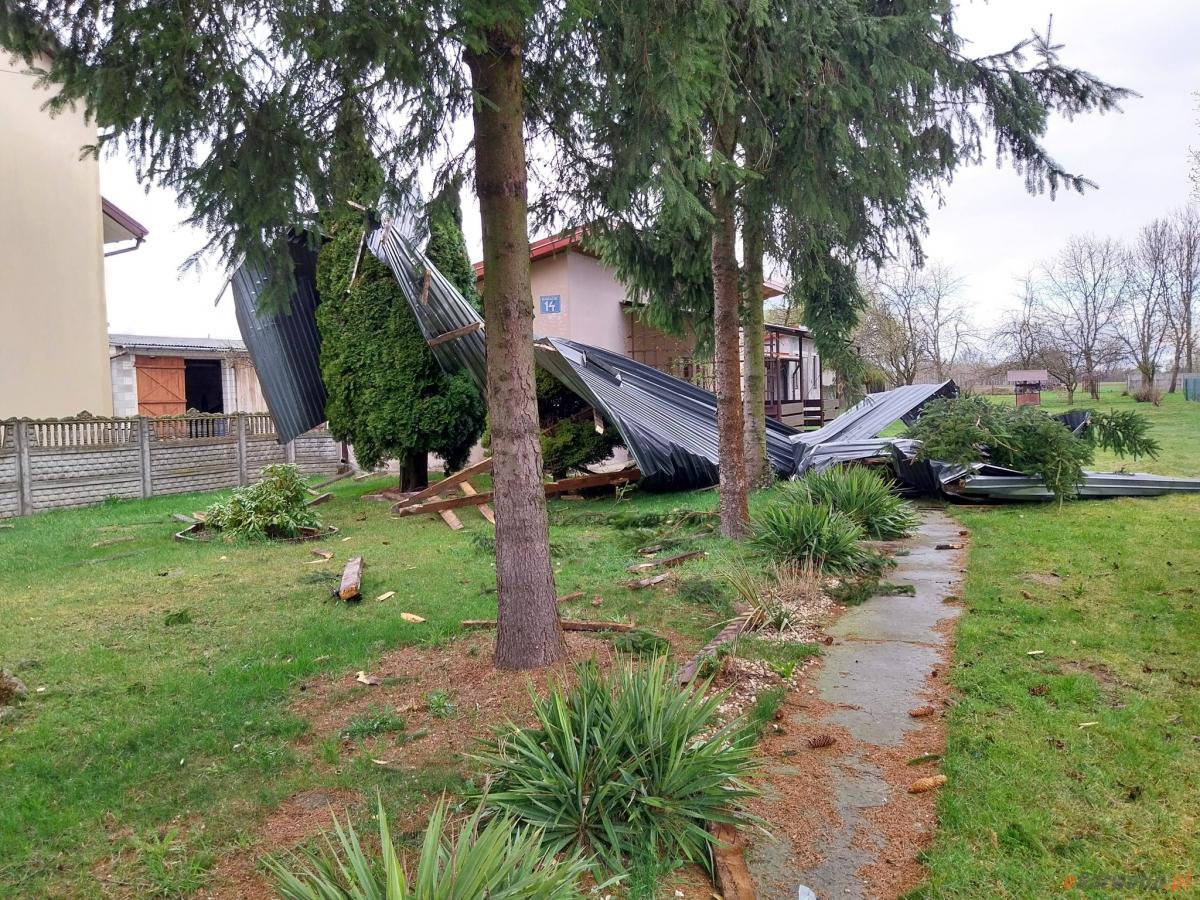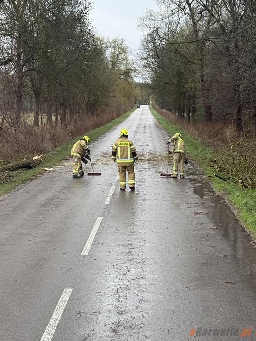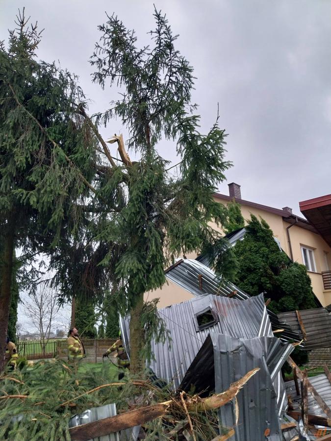 Strażacy walczyli ze skutkami wichury w powiecie garwolińskim: uszkodzenia dachów i powalone drzewa