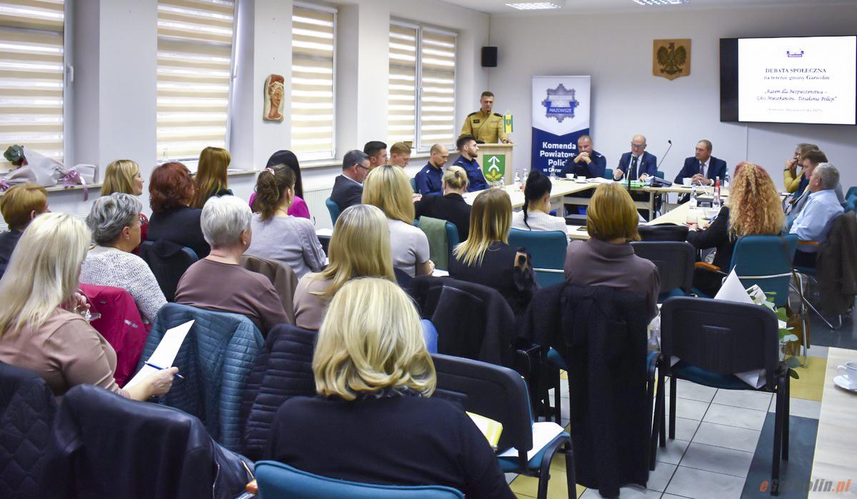 W czwartek, 24 października, odbyła się debata społeczna Razem dla Bezpieczeństwa – Głos Mieszkańców, Działania Policji w Urzędzie Gminy Garwolin. W spotkaniu uczestniczyli przedstawiciele społeczności lokalnej i władz, omawiając kwestie bezpieczeństwa oraz współpracy z Policją. Wartość współpracy podkreślił mł. insp. Michał Sputo, zachęcając do dalszego zaangażowania mieszkańców w działania profilaktyczne i edukacyjne. Najnowsze narzędzia, takie jak Krajowa Mapa Zagrożeń Bezpieczeństwa czy aplikacja Moja Komenda, zostały przedstawione jako kluczowe dla poprawy sytuacji na terenie gminy Garwolin. To właśnie wspólna inicjatywa mieszkańców i Policji ma realny wpływ na bezpieczeństwo lokalnej społeczności.