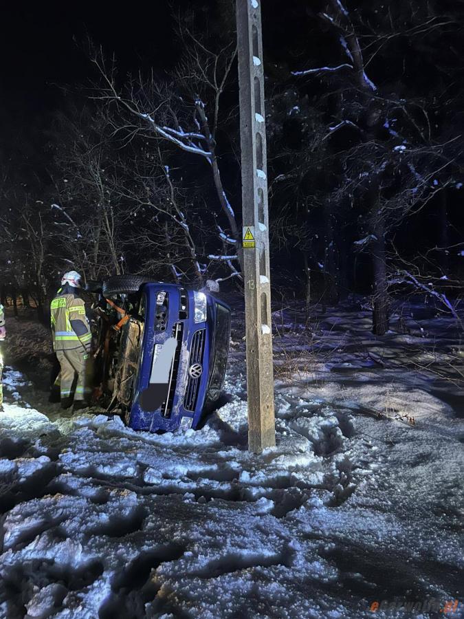 Zdjęcia Zimowe wyprzedzanie zakończył w rowie - Seria kolizji na drogach powiatu - fotorelacja