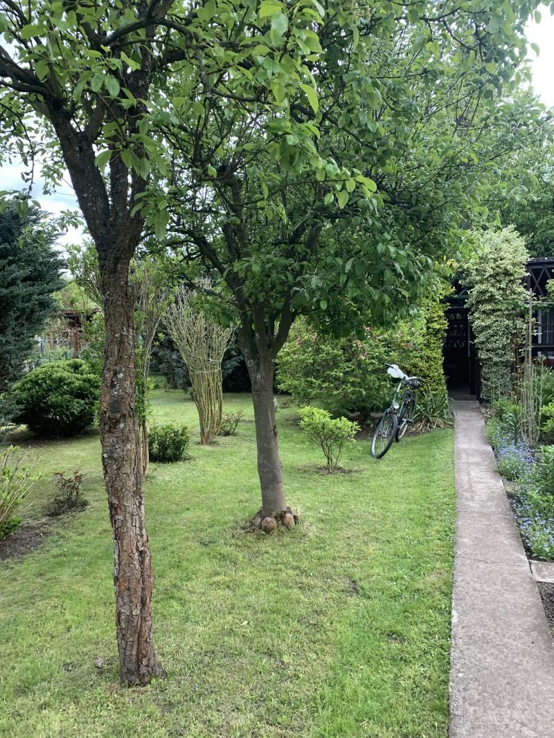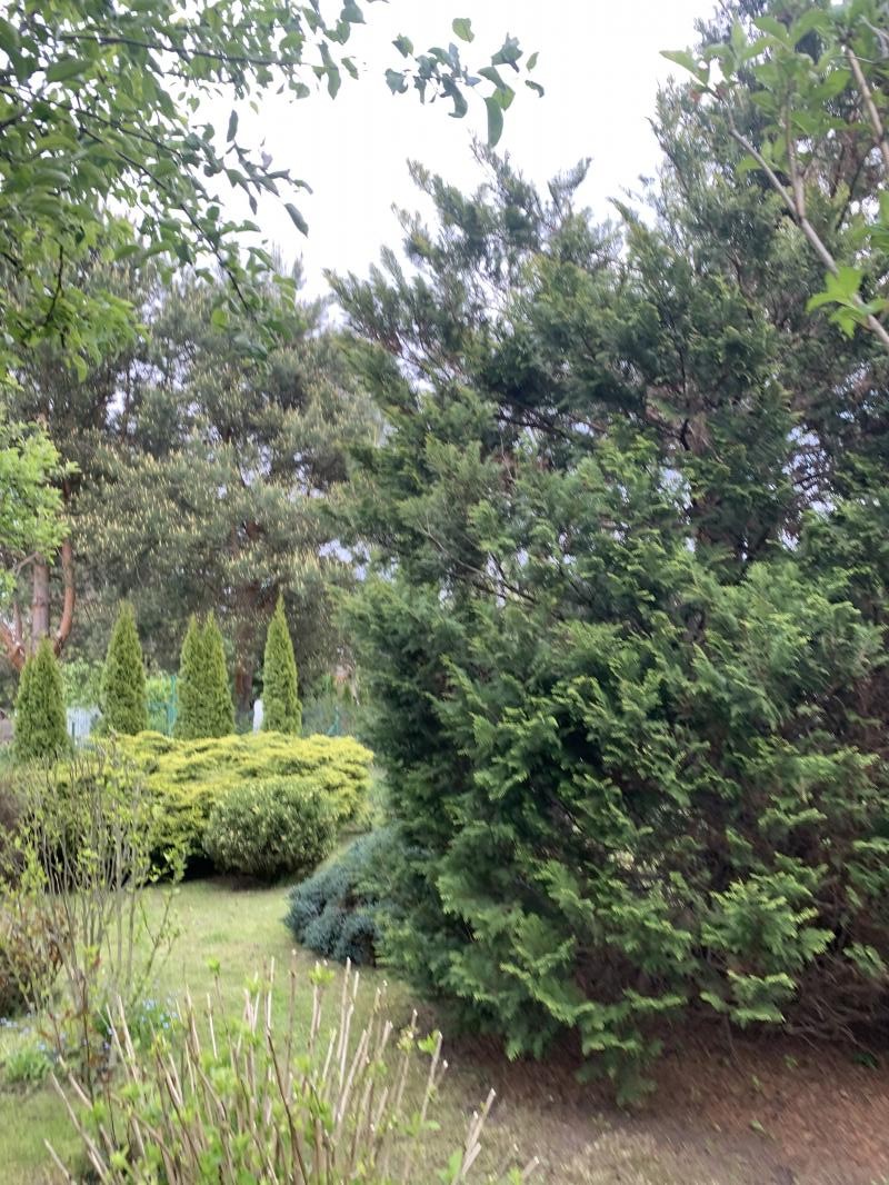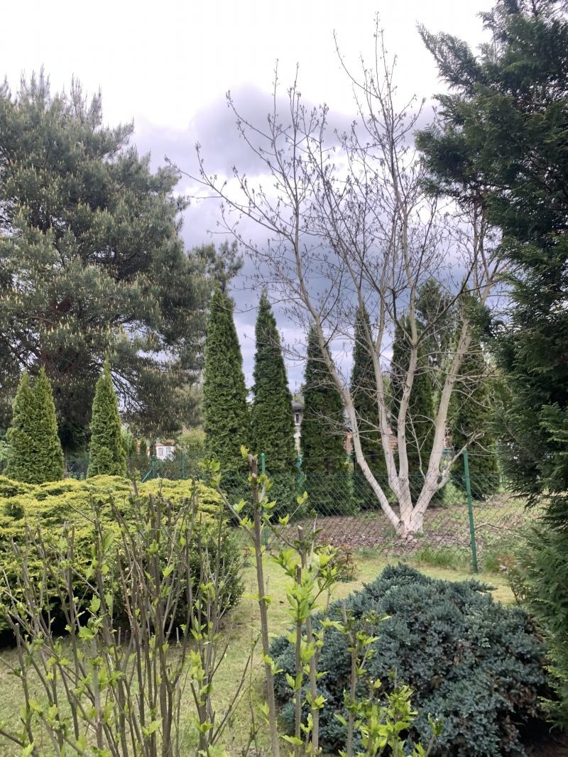 Na działce znajdują się domek z werandą, komórka narzędziowa , miejsce na warzywniak oraz liczne zasadzenia drzew oraz krzewów ozdobnych ,