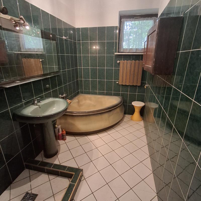 1. Dom mieszkalny o powierzchni użytkowej 207 m2 i całkowitej 215,1 m2. Budynek wybudowany w roku 1992, o powierzchni zabudowy 109 m2. Trzy kondygnacyjny bez piwnicy z poddaszem mieszkalnym. Na dachu położona jest blachodachówka, okna drewniane dobrej jakości w stanie dobrym, parapety i kominek z marmuru. Budynek jest wybudowany z ceramiki, elewacja ceglana, podłoga parkiet oraz płytki. Dom ma dwa balkony i taras połączone z basenem. Na terenie działki liczne nasadzenia. Nieruchomość obecnie wymaga nakładów.