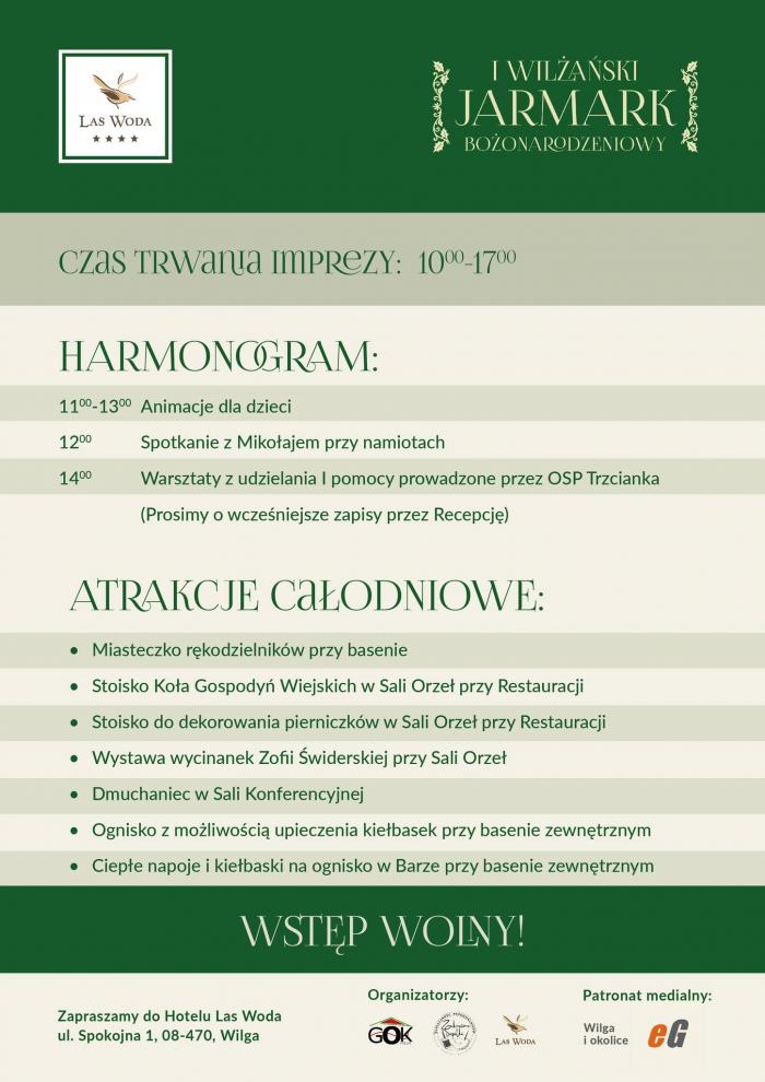 Jeśli szukasz idealnego miejsca, by poczuć prawdziwą magię świąt, a jednocześnie zadbać o chwilę relaksu przed świąteczną gorączką, zaplanuj sobie sobotę 6 grudnia. W Hotelu Las Woda odbędzie się I Wilżański Jarmark Bożonarodzeniowy!