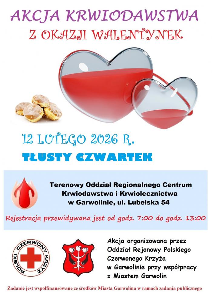 Czy istnieje piękniejszy dowód miłości niż dar, który ratuje życie? Już w najbliższy czwartek mieszkańcy Garwolina i powiatu będą mieli okazję, by świętować Walentynki w najbardziej szlachetny sposób. Tym razem akcja honorowego krwiodawstwa łączy się z tradycją tłustego czwartku.